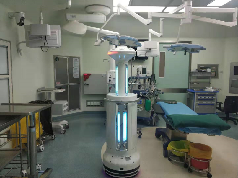 钛米科技开发的智能消毒机器人,能识别环境内的物品进行自主避障;配备消毒管理软件,自动根据空间面积计算消毒时间,并自主围绕消毒目标进行360°无死角消毒;机器人全程智能操作,人机分离,有效的避免、降低医护人员被感染风险,也提高了消毒的效果。