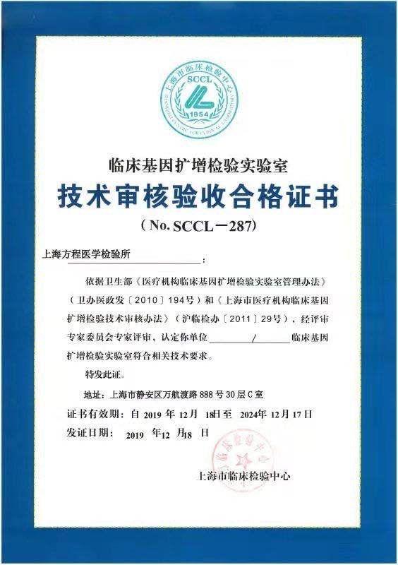 深兰科技旗下医检所临床基因扩增检验实验室资质证书
